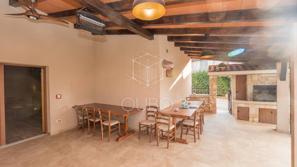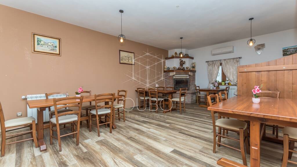 In der Umgebung von Porec, in einem ruhigen und angenehmen Ort, nur 4 km vom Meer entfernt, steht dieses attraktive freistehende Haus zum Verkauf, das für gastronomische Zwecke vorgesehen ist und im Jahr 2019 erbaut wurde. Mit einer Gesamtfläche von 274 m² erstreckt sich die Immobilie über das Erdgeschoss und das Obergeschoss und stellt sowohl eine hervorragende Investitionsmöglichkeit als auch die Chance dar, ein bereits erfolgreich etabliertes Geschäft zu übernehmen.