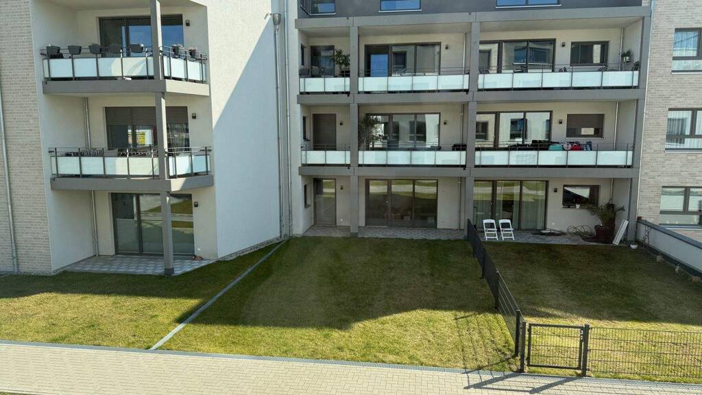 - Ca. 53?m² Wohnfläche, 2 Zimmer inkl. separater Küche und Abstellraum - Terrasse (ca. 9,07?m², 50?% angerechnet: ca. 4,54?m²), Erdgeschoss, Ost-Ausrichtung - Erstbezug (BJ 2023), KfW-55, Energieklasse A - Fußbodenheizung (Fernwärme über BHKW), modernes Duschbad - Aufzug bis Keller & Tiefgarage, Abstellraum mit WM-Anschluss - Elektrische Außenrollläden, Kabel/Sat-TV, separater Kellerraum - Außenstellplatz (8.000?€) + TG-Stellplatz (22.000?€) - Hausgeld ab ca. 188?€/Monat, verfügbar ca. 6-8 Wochen nach Notartermin - Provisionsfrei