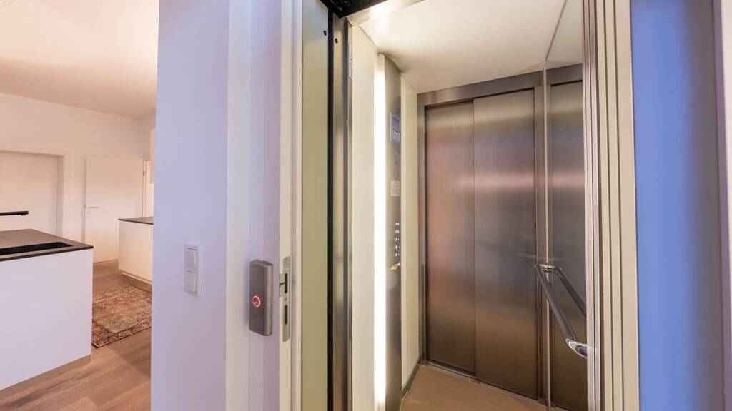 Der Zugang zur Wohnung erfolgt direkt mit dem Lift, der exklusiv in die Einheit führt. Alternativ steht auch das Stiegenhaus zur Verfügung.