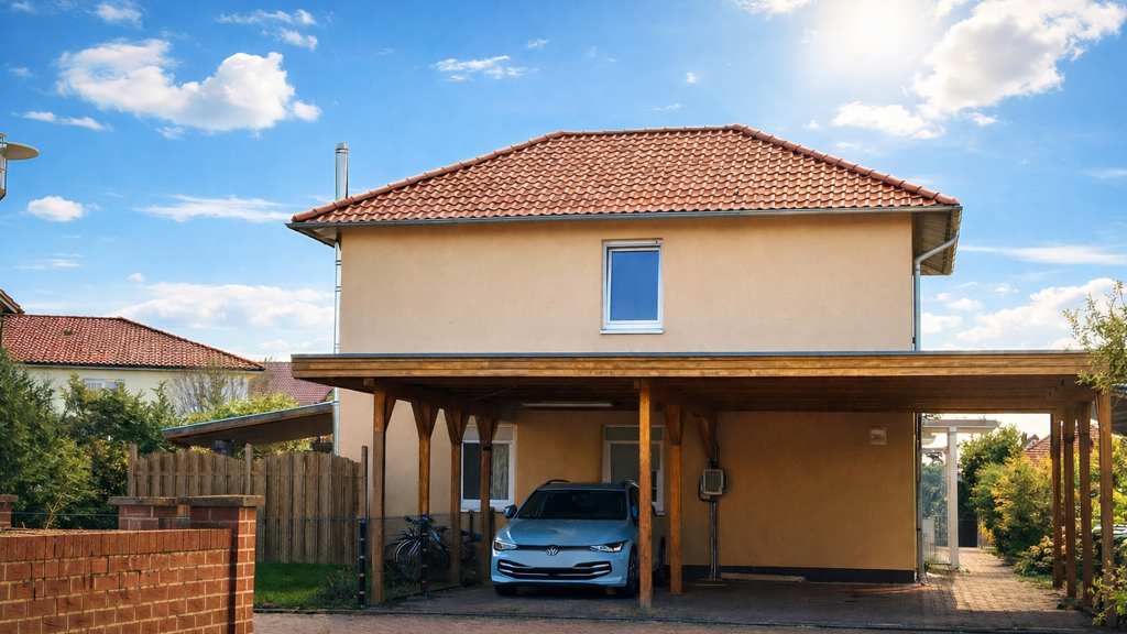 Zum Kauf steht eine schöne modernisierte Doppelhaushälfte (Baujahr 2008), die in 2026 mit neuen Heizkörpern im Obergeschoss ausgestattet wurde. Nach Auszug der Mieter wurde die Immobilie innen frisch gestrichen. Hier können Sie also sofort einziehen! Im Erdgeschoss bildet der offene Küchen-Ess-und Wohnzimmerbereich mit dem Kaminofen den Mittelpunkt. Das Gäste-WC und ein kleiner Hauswirtschaftsraum sowie der große Eingangsbereich runden das Raumangebot im Erdgeschoss ab. Über eine Treppe gelangen Sie in das Obergeschoss mit drei Schlafzimmern sowie einem Masterbad. Die Immobilie ist nicht unterkellert. Das Auto parken Sie unter dem eigenen Carport.