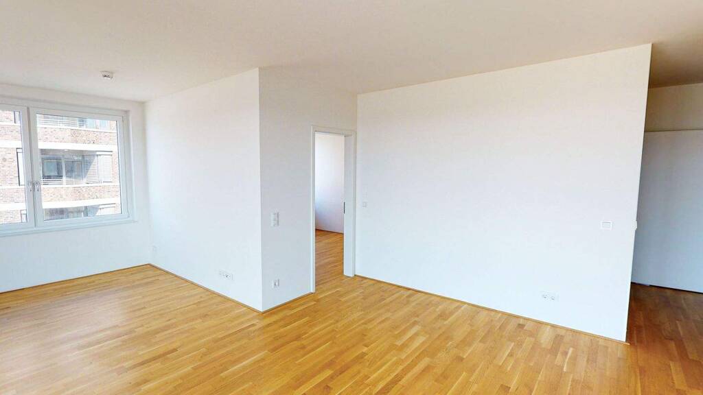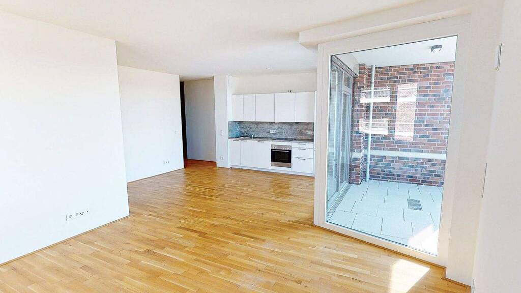 Bei der angebotenen Wohnung handelt es sich um eine 2-Zimmer-Wohnung. Beim Betreten der Wohnung gelangt man in einen Flurbereich mit Nische für einen Schrank, eine Kommode oder eine Ankleide. Über den Flur sind das moderne Duschbad mit Waschmaschinenanschluss und das großzügige Wohnzimmer mit offener Küche (inkl. Einbauküche) erschlossen. Vom Wohnzimmer hat man Zugang zu einem Schlafzimmer mit etwa 13 m² sowie einer gemütlichen Loggia mit Nord-West-Ausrichtung. Die Wohnung liegt in zweiter Wasserreihe. Weiterhin kann ein Tiefgaragenstellplatz angemietet werden. Zudem bietet ein Kellerraum weitere Staufläche.