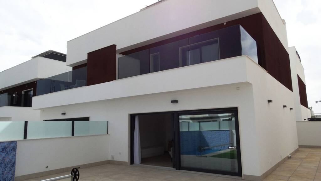 Brandneues Projekt von 4 Doppelhaushälften mit 3 Schlafzimmern und privatem Swimmingpool in Pilar de la Horadada (Alicante), nur wenige Gehminuten von La Rambla und dem Stadtzentrum von Pilar de la Horadada entfernt. Eine kurze Fahrt entfernt sind die schönen Sandstrände von Torre de la Horadada, Mil Palmeras und El Mojon, und Lo Romero Golfplatz.