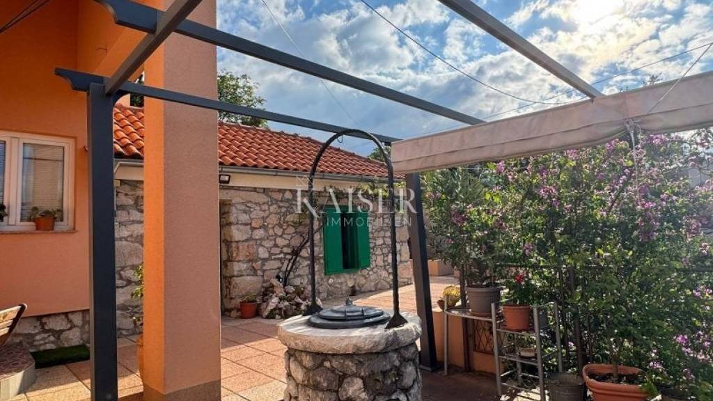 Die Immobilienagentur Kaiser Immobilien präsentiert Ihnen ein wunderschönes Einfamilienhaus mit einer Gesamtfläche von 170 m², Baujahr 1985, renoviert im Jahr 2015. Das Haus besteht aus zwei separaten Wohnungen und ist daher ideal sowohl für das Familienleben als auch für die Vermietung an Touristen. Im Obergeschoss mit einer Fläche von ca. 130 m² befindet sich eine geräumige Wohnung mit einem Schlafzimmer, einem Badezimmer, einem Arbeitszimmer mit eigenem Bad, einem Abstellraum, einer Küche und einem großen und hellen Wohnzimmer, das bei Bedarf in zwei separate Räume unterteilt werden kann. Das Besondere an dieser Etage ist ein großer verglaster Raum, der einen einzigartigen Ort zum geselligen Beisammensein, Entspannen und Genießen des Panoramablicks auf das Meer und die Inseln bietet. Zusätzlichen Wert bietet auch der Dachboden, der als zusätzlicher Stauraum genutzt oder nach den Wünschen der zukünftigen Eigentümer ausgebaut werden kann. Das Untergeschoss mit einer Fläche von 40 m² ist als offener Raum mit Wohnzimmer, Küche, Bad und Schlafzimmer gestaltet. Dieser Raum kann für Gäste, als separate Wohneinheit oder für touristische Zwecke genutzt werden. Das Haus ist von einem ca. 650 m² großen, angelegten und eingezäunten Garten umgeben, der reich an Grünpflanzen und Obstbäumen ist. Ein Pavillon, eine Taverne und ein Abstellraum sorgen für zusätzlichen Komfort und laden zum Genießen der Natur in der Privatsphäre Ihres Zuhauses ein. Die Lage ist äußerst günstig: Alle notwendigen Annehmlichkeiten des täglichen Lebens befinden sich in unmittelbarer Nähe - Schule, Kindergarten, Geschäft, Park, Kinderspielplatz und Bushaltestelle. Meer und Strand sind nur wenige Gehminuten entfernt. Das Haus ist vollständig mit Infrastruktur ausgestattet - Strom, Wasser, Abwasser, Gas und Internet. Dieses Haus vereint Komfort, Funktionalität und mediterranes Flair. Es eignet sich perfekt für Familienleben und Urlaub, aber auch als Investition mit touristischem Potenzial. Der geräumige Innenraum, der große Glasraum mit Panoramablick auf das Meer und die Inseln sowie der angelegte Garten schaffen einen Raum, in dem man sich den Alltag voller Ruhe, Komfort und der Schönheit des mediterranen Lebens leicht vorstellen kann. Die Maklerprovision für den Käufer beträgt 3 % zzgl. MwSt. und beinhaltet alle Dienstleistungen im Zusammenhang mit dem Immobilienkauf. Sie wird erst nach Abschluss des ersten Rechtsgeschäfts erhoben, was Käufern einen sicheren und transparenten Prozess garantiert. Für weitere Informationen oder zur Vereinbarung eines Besichtigungstermins stehe ich Ihnen gerne zur Verfügung: Nikolina Stimac Mobil: +385 99 722 0135, +385 99 567 7888 nikolina@kaiser-immobilien.hr