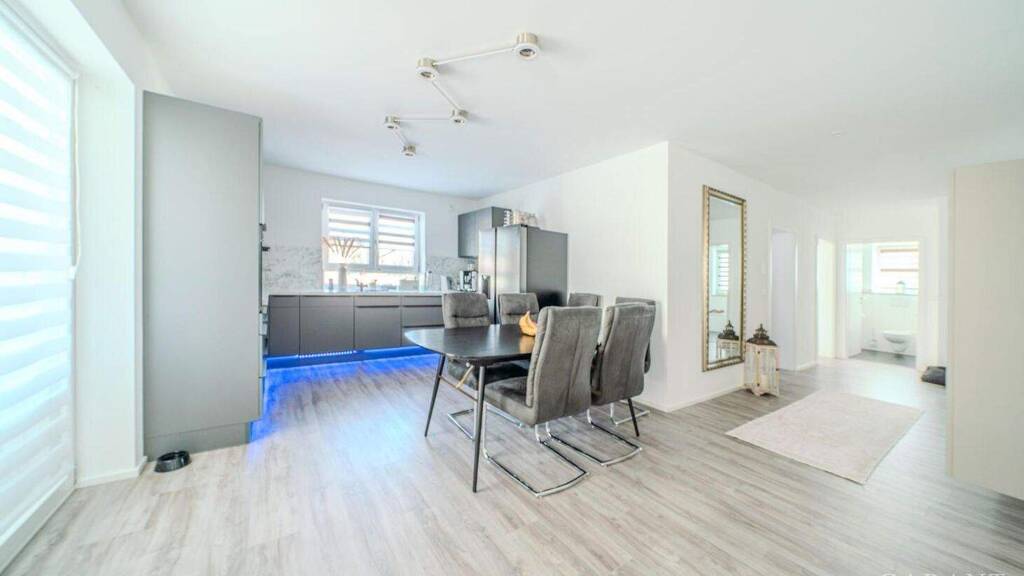 Diese hochwertig ausgestattete 3 Zimmer-Wohnung befindet sich in einem 2017 errichteten Gebäude und bietet rund 90 m² Wohnfläche. Sie liegt in einer ruhigen Wohnlage in Höchstadt und besticht durch großzügige Fensterflächen, ein modernes Raumkonzept und durchdachte Details. Zur Einheit gehört eine Garage. Die Wohnung ist derzeit vermietet und ideal als Kapitalanlage oder für den zukünftigen Eigennutzer geplant. Die lichtdurchfluteten Räume, der durchgehende Boden mit Fußbodenheizung und das solide Ziegelhaus mit Isolierung sorgen für ein behagliches Wohngefühl das ganze Jahr über. Der Grundriss ist modern und offen gestaltet, große Fensterfronten ermöglichen einen schönen Ausblick und bieten angenehmen Lichteinfall.