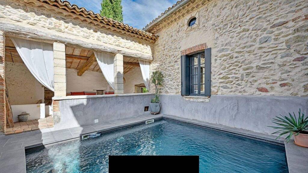 Located in an authentic village just 20 minutes from Uzès, this magnificent renovated village house offers approximately 290 m2 of living space, elegantly combining the charm of the old with contemporary materials.
