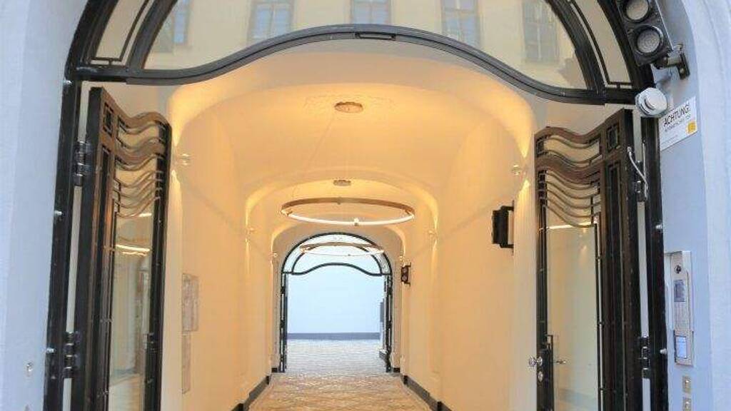 Die Hofeinfahrt mit dem Platzgewölbe und exklusiver Beleuchtung wurde neu gestaltet und mit 2 wunderschönen Hauseingangstoren aus Metall und Glas inkl. Funkfernsteuerung versehen. Der Hof wurde mit schwarzen und weissen Pflastersteinen belegt. Eine zusätzliche Begrünung einer Hauswand wurde bereits umgesetzt.