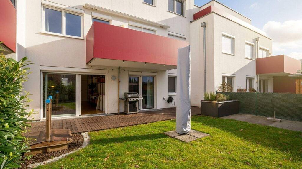 Moderne 3-Zimmer-Gartenwohnung im Niedrigenergiehaus - Wohnen im Grünen vor den Toren Wiens Zum Verkauf gelangt eine ca. 95 m² große 3-Zimmer-Eigentumswohnung mit Eigengarten in einem 2019 errichteten Niedrigenergiehaus in Ziegelmassivbauweise. Die südostseitige Ausrichtung der Wohnräume sorgt für helle, sonnige Räume und hohe Wohnqualität. HIGHLIGHTS * Wohnfläche ca. 95 m² * 3 Zimmer, EG * Eigengarten ca. 61 m², hofseitig * Terrasse ca. 24 m², mit Wasseranschluss, teilw. überdacht * 2 Tiefgaragenplätze nebeneinander (Nr. 38 & 39, mit Steckdose) * Kellerabteil ca. 5,6 m² (mit Steckdose) * Wohnbauförderung ca. € 28.000,-- übernehmbar (preisreduzierend) AUSSTATTUNG * Niedrigenergiehaus, Baujahr 2019 * Ziegelmassivbau * 3-fach verglaste Kunststofffenster (tw. versperrbar, Insektenschutz) * Elektrische Außenrollläden * Fußbodenheizung (Pellets Zentralheizung) * Solaranlage für Warmwasser, Gasheizung als Backup * Eiche-Parkett in Wohnräumen * Feinsteinzeug-Fliesen in Vorraum, Küche, Bad & WC RAUMAUFTEILUNG * Zentraler Vorraum * Wohnküche + 2 Zimmer südostseitig zum Garten * Bad, WC & Küche nordwestseitig zur Straße LAGE * 3 Min. zu Fuß zur Bahnstation Untertullnerbach (S-Bahn Wien) * Supermarkt 5 Gehminuten * Wienerwaldsee ca. 800 m * Kletterpark Purkersdorf ca. 450 m * Wiener Stadtgrenze ca. 7 Autominuten Ruhige Gartenwohnung mit perfekter Anbindung & hoher Wohnqualität vor den Toren Wiens. Der Vermittler ist als Doppelmakler tätig. Infrastruktur / Entfernungen Gesundheit Arzt <2.000m Apotheke <3.000m Klinik <5.500m Kinder & Schulen Schule <1.500m Kindergarten <3.000m Universität <9.500m Nahversorgung Supermarkt <500m Bäckerei <2.500m Einkaufszentrum <7.500m Sonstige Bank <2.500m Geldautomat <2.500m Post <3.000m Polizei <4.000m Verkehr Bus <500m Bahnhof <500m U-Bahn <10.000m Straßenbahn <10.000m Autobahnanschluss <5.000m Angaben Entfernung Luftlinie / Quelle: OpenStreetMap