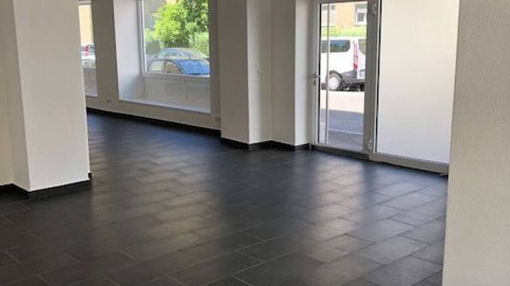 Die Räumlichkeiten können nach Vereinbarung bezogen werden: große, neue Fenster mit VSG-Sicherheitsverglasung - der Boden wurde mit hochwertigen dunkelgrauen Fliesen ausgelegt.
