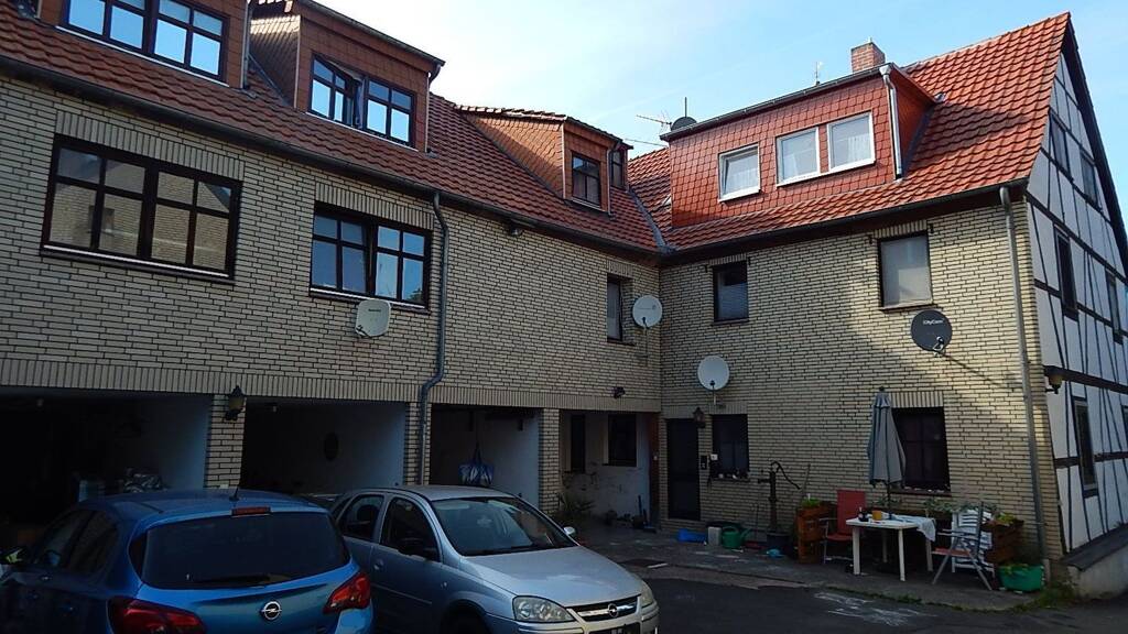 Vier Wohnungen befinden sich im Haupthaus (Fachwerk Bauweise ca.1930) und zwei weiteren im Nebengebäude (Anbau massiv Bauweise), in welchen sich auf der Erdgeschoßetage drei offene Garagen, eine Abstellgarage sowie eine Waschküche befinden.