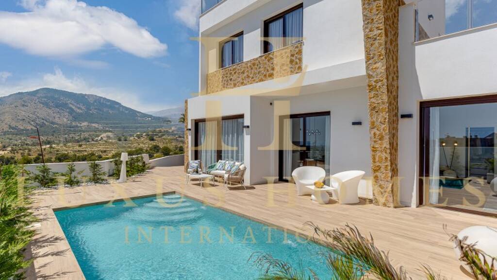 Wir sind stolz darauf, Ihnen diese neue Entwicklung des Neubaus von unabhängigen Villen in einem Wohngebiet von Finestrat zu präsentieren. Die Häuser verteilen sich auf zwei Etagen. Im Erdgeschoss finden wir ein geräumiges und helles Wohnzimmer mit direktem Zugang zum Garten und Pool, von dem aus wir einen herrlichen Blick auf die Skyline und das Meer von Benidorm genießen können, eine offene Küche, die komplett möbliert und ausgestattet ist, ein Gäste-WC und ein Schlafzimmer mit Bad en suite mit direktem Zugang zum Garten und Pool. Im Obergeschoss befinden sich 2 Schlafzimmer, 1 Badezimmer und eine große Terrasse, von der aus wir den Blick auf den Puig Campana genießen können. Vom Obergeschoss aus gibt es einen direkten Zugang zum Solarium. Das Haus wird über eine Fußbodenheizung in den Bädern verfügen, mit der Möglichkeit der Installation im ganzen Haus und der Vorinstallation von Klimaanlagenkanälen. Das Grundstück des Hauses verfügt über Parkplätze für Fahrzeuge.