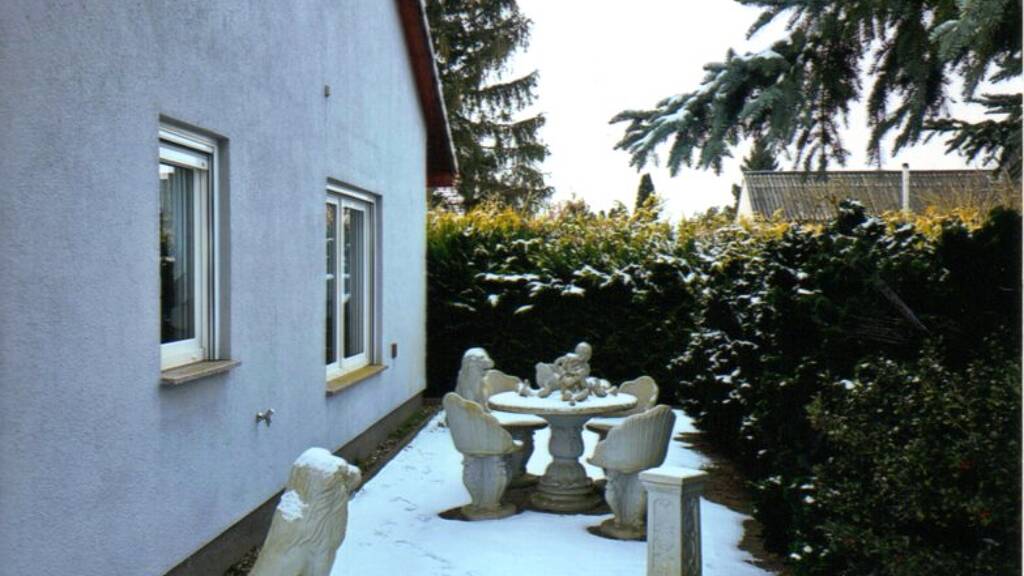 Das Wohnhaus wurde 2003 in massiver Bauweise errichtet. Vom Hauseingang erreicht man einen Flur/ Diele, von welcher rechts eine praktische Küche mit Einbaumöbeln abgeht. Etwas weiter von der Diele aus befinden sich rechts das Wohnzimmer und geradeaus das Dusch/WC mit Handwaschbecken. Linksseitig der Diele gelangt man in ein kleineres Zimmer (z.B: Arbeitszimmer oder Gästezimmer) sowie in das Schlafzimmer. Von der Diele aus kann man zusätzlich über eine Auszugstreppe in den Dachboden ( bisher unbeheizt) gelangen, welcher aktuell als Abstellfläche genutzt wird. Hinter dem Hauskann man eine gepflasterte Terrasse mit Blick in den Garten genießen. Das ca. 1.300 m² große, gepflegte Grundstück ist sehr schön angelegt mit Hecken, Wegen und Blumenrabatten. Weiter hinten im Garten befindet sich ein Sommerhaus, welches gut nutzbar ist. Dieses könnte im Sommer auch als Gästehaus dienen, da sanitäre Anlagen vorhanden sind. Weiterhin ist noch Nebengelass ( z.B. Werkstatt) vorhanden. Insgesamt handelt es sich um eine gepflegte Immobilie für die kleine Familie oder ein Paar.