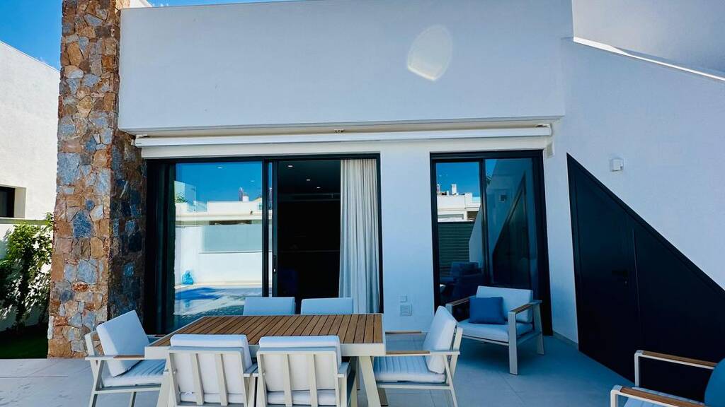 Im Obergeschoss befindet sich eine große Sonnenterrasse, von der aus Sie das Mar Menor sehen und Sonnenauf- und -untergänge genießen können. Die Sonnenterrasse verfügt außerdem über eine große Pergola und eine moderne Sommerküche.