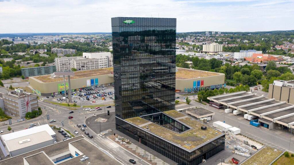Der ca. 70 m hohe BITZER Turm ist schon von weitem zu erkennen und beeindruckt durch seine imposante Architektur. Der Büroneubau mit insgesamt 17 Geschossen setzt sich aus dem Büro-Turm sowie dem angrenzendem zweigeschossigem Sockelgebäude zusammen.