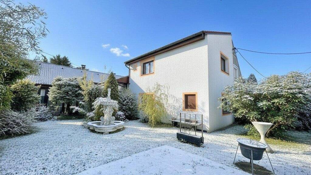 OBJEKTBESCHREIBUNG: DAS GROSSZÜGIGE HAUS ERSTRECKT SICH ÜBER INSGESAMT 8 ZIMMER, EINE KÜCHE, 1 BADEZIMMER, 2 WCS SOWIE EINEN LICHTDURCHFLUTETEN WINTERGARTEN. AUF DEM GRUNDSTÜCK BEFINDET SICH EINE GARAGE FÜR ZWEI AUTOS SOWIE ZWEI ZUSÄTZLICHE PKW-STELLPLÄTZE VOR DER GARAGE. DER LIEBEVOLL ANGELEGTE GARTEN BIETET EINEN BRUNNEN, TEICH, GRILLPLATZ, ÜBERDACHUNG SOWIE NEBENGEBÄUDE.