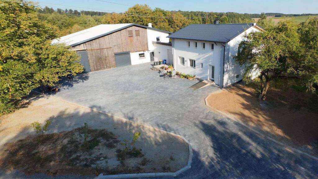 Zu dem Anwesen gehören eine großzügige Scheune mit 520 m² und eine Maschinenhalle (10 x 20 m). Beide Gebäude wurden kürzlich mit neuen Dächern (Trapezblech mit Oberlichtern) versehen. Die Scheune hat einen stabilen Boden aus hochbelastbarem Beton, und im Obergeschoss befindet sich ein Heulager mit 275 m². Das größte Tor der Scheune misst 4 m in der Breite und 3,6 m in der Höhe - ideal für große Maschinen oder Fahrzeuge. In der Maschinenhalle gibt es ausreichend Platz für Traktoren, Lkw, Bagger oder Wohnmobile.
