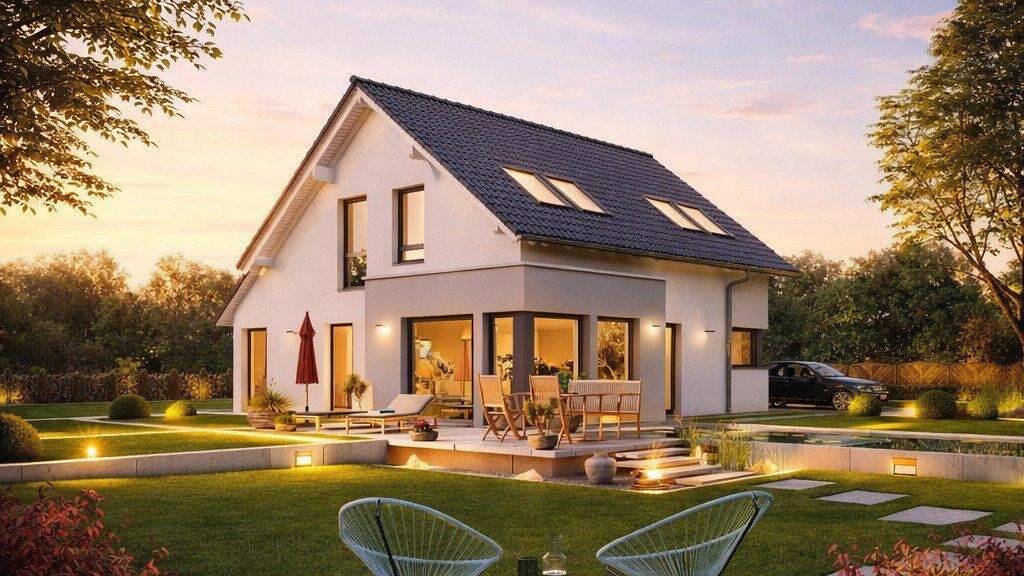 Manche Häuser sind vier Wände - dieses Haus ist ein Lebensgefühl. Mit dem "Sunshine 143 V3" entsteht Ihr ganz persönlicher Rückzugsort: lichtdurchflutet, großzügig und voller Möglichkeiten. Auf rund 145 m² Wohnfläche verbinden sich klare Architektur, zeitlose Eleganz und moderne Wohnqualität zu einem Zuhause, das jeden Tag aufs Neue begeistert. Der stilvolle Erker erweitert den Wohnraum spürbar, bodentiefe Fenster holen das Tageslicht ins Haus und schaffen eine Atmosphäre von Offenheit und Wärme. Drei behagliche Schlafzimmer, ein modernes Bad und ein sonniger Balkon bieten Raum für Familie, Ruhe und neue Erinnerungen. Hier beginnt Ihr Morgen mit Licht - und endet mit dem Gefühl, genau am richtigen Ort zu sein. Das ca. 483 m² große Grundstück liegt in zweiter Reihe - angenehm geschützt, ruhig und privat. Erreicht wird es über die linke Grundstücksseite; ein entsprechendes Wegerecht ist eingetragen. So genießen Sie die besondere Kombination aus diskreter Lage und komfortabler Erreichbarkeit. Ihr Garten wird zur grünen Oase - für lange Sommerabende, spielende Kinder oder entspannte Stunden auf der Terrasse. Und weil ein echtes Zuhause mehr ist als Architektur, profitieren Sie von den exklusiven Living Haus Mehrwerten: eine individuell geplante Traumküche, modernste Energieeffizienz durch I-KON, transparente Projektbegleitung über das Bau-Cockpit, attraktive Finanzierungsmöglichkeiten und auf Wunsch professionelle Unterstützung beim Innenausbau. Dieses Haus ist kein Standard. Es ist der Beginn Ihres nächsten Lebensabschnitts.