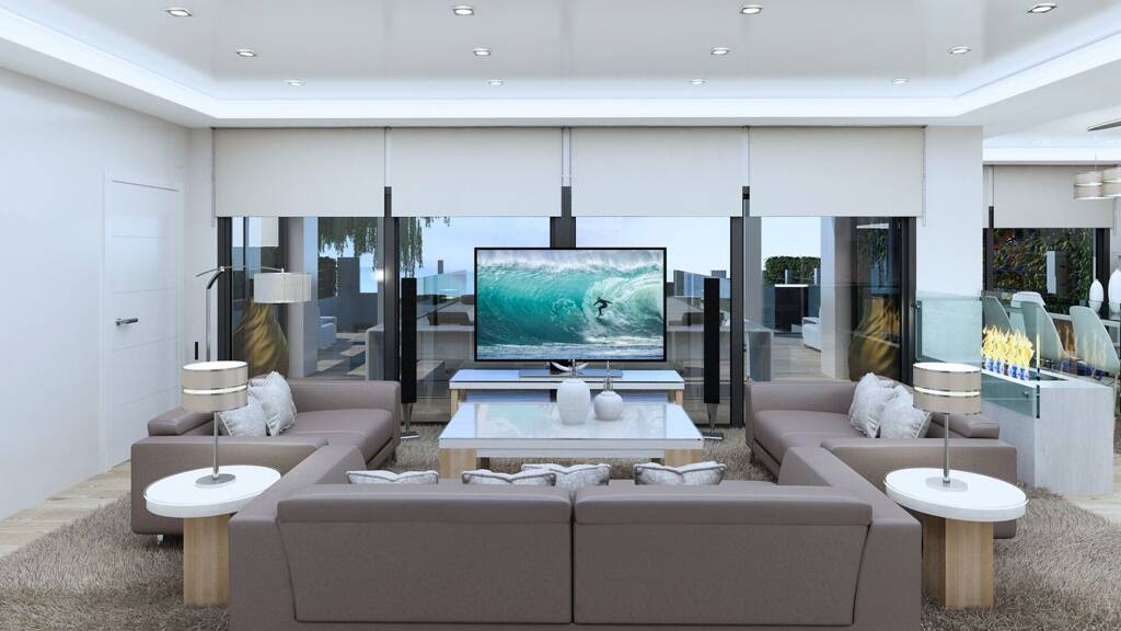 Die Villa erstreckt sich über 3 Etagen: Im Erdgeschoss befindet sich ein geräumiges Wohnzimmer mit Blick auf das Meer, eine voll ausgestattete Küche, 2 Schlafzimmer mit en-suite Badezimmern und eine Gästetoilette. Im Obergeschoss befindet sich das Hauptschlafzimmer mit en-suite Badezimmer und begehbarem Kleiderschrank sowie ein weiteres Schlafzimmer mit en-suite Badezimmer und Zugang zu Terrassen mit Meerblick. Im Untergeschoss gibt es ein Fitnessstudio mit Badezimmer, eine Garage, ein Zimmer für das Personal und eine Waschküche.