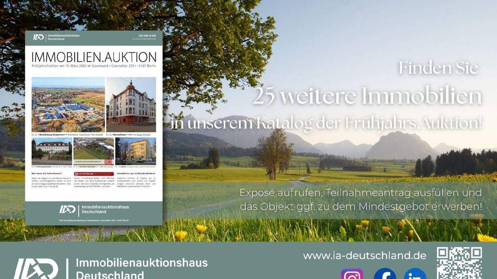 Alle Angaben sind ohne Gewähr und basieren ausschließlich auf Angaben, Daten und Informationen, die uns vom Auftraggeber/Veräußerer übermittelt wurden. Die IAD Immobilienauktionshaus Deutschland GmbH übernimmt keine Gewähr für die Richtigkeit, Vollständigkeit und Aktualität dieser Angaben.