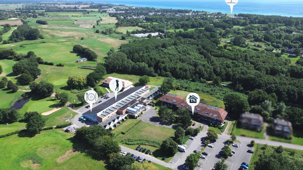 Für Freizeit und Erholung bietet die Lage ein vielfältiges Angebot: Direkt nebenan lädt ein gepflegter 9-Loch-Golfplatz zu sportlichen Runden mit Blick auf die Ostseelandschaft ein. Naturfreunde und Hundebesitzer schätzen den angrenzenden Wald, durch den sich Spazierwege direkt bis zum feinsandigen Grömitzer Strand führen - inklusive ausgewiesenem Hundestrand. Ob Sonnenbaden, entspannte Spaziergänge oder sportliche Aktivitäten am Wasser - hier kommen Erholungssuchende und Aktivurlauber gleichermaßen auf ihre Kosten.