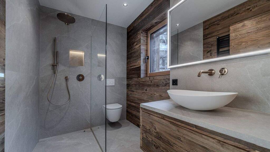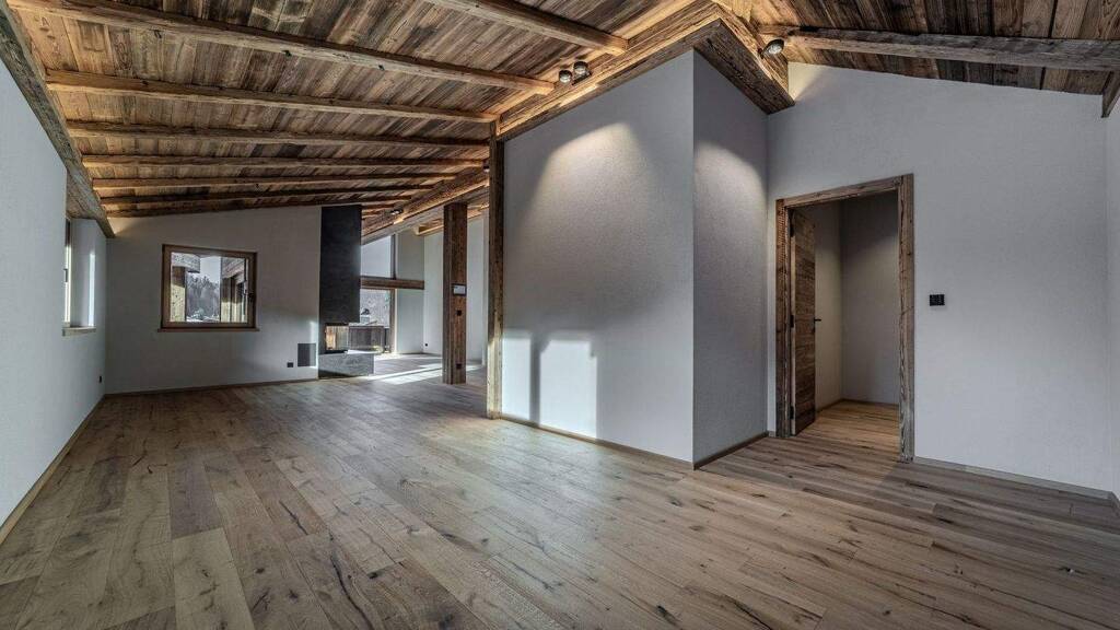 Diese gerade ferig gestellte Luxusimmobilie im modernen, alpinen Stil bettet sich in eine der gefragtesten Lagen Kirchbergs. Altholz, Naturstein und viel Glas dominieren die attraktive Fassade und spiegeln den modernen Kitzbüheler Architekturstil perfekt wider. Angekommen im 1. Obergeschoß dieser Liegenschaft, welches Sie bequem und komfortabel mit dem Aufzug oder über eine repräsentative Treppe erreichen, offenbart sich die Schlafebene dieser Wohnung, welche durch eine großzügig bemessene Diele mit Garderobe abgerundet wird. Zwei voll ausgestattete Schlafzimmer mit hochwertigst vom Tischler angefertigten Einbauschränken und Badezimmer en suite lassen in Haptik und Qualität deutlich erkennen, wie viel Herzblut und Know-how in dieses Objekt gesteckt wurden. Auf derselben Ebene der Wohnung befindet sich auch der großzügig angelegte Masterbereich mit Bad en suite ein. Selbstverständlich gelangen Sie direkt aus dem Schlafzimmer auf den groß bemessenen Sonnenbalkon.