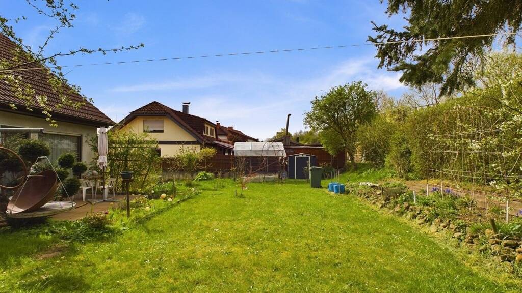Der groĂźe Garten bietet viel Gestaltungsspielraum - ob Spielbereich fĂĽr Kinder, GemĂĽsegarten, Ruheoase oder Platz fĂĽr eine Terrasse mit Grillplatz. Ein AuĂźenstellplatz fĂĽr PKW rundet das Angebot ab.
