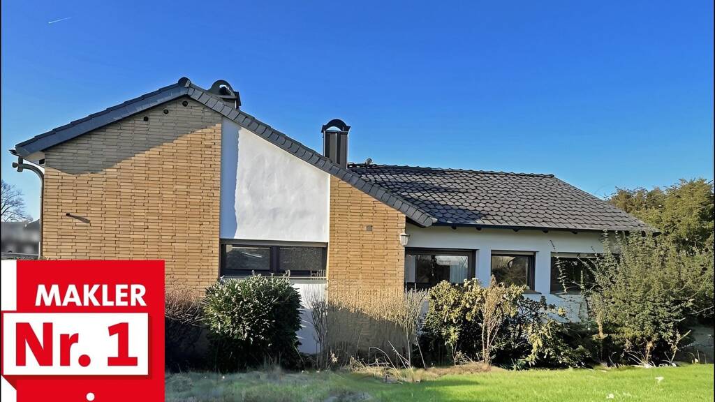 Ausstattung auf einen Blick: . Baujahr ca. 1964, massive Bauweise . Ca. 117 m² Wohnfläche auf einer Ebene . 1.015 m² Grundstück . Winkelbungalow mit Satteldach . 5 Zimmer + Küche + Bad mit separatem WC + Gäste-WC . Große West-Terrasse . Neuwertige und effiziente Öl-Zentralheizung/Brennwerttherme aus BJ 2022 . Eigene Garage mit Nebenfläche . Beliebtes Wohnquartier: "Harringholz-Siedlung" in Hamm-Wiescherhöfen