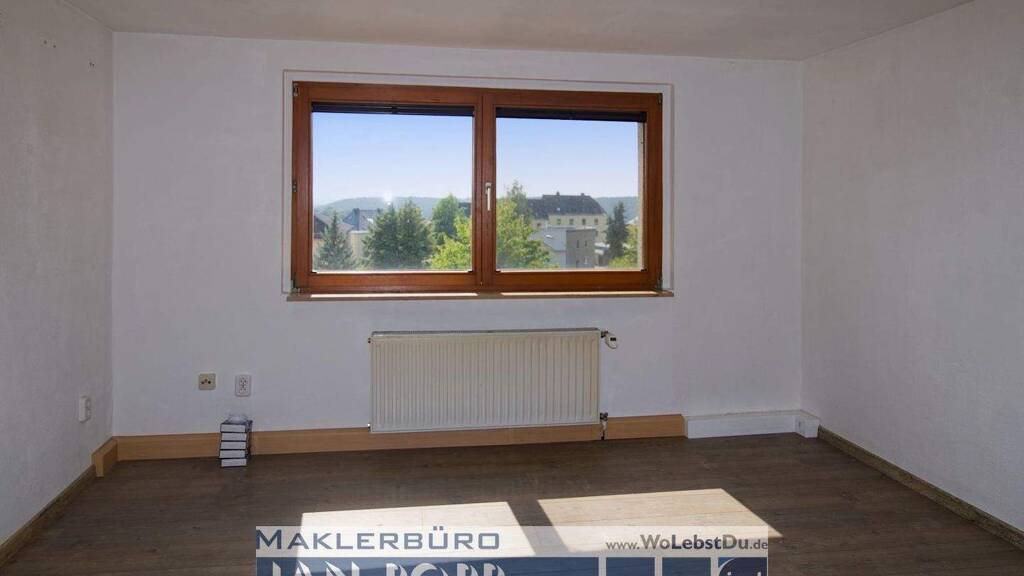 Geräumige Etagenwohnung im 2. Obergeschoss eines Vierfamilienhauses in Greiz-Pohlitz. Hier stehen Ihnen fünf Wohnräume (davon 2 Durchgangszimmer) zur Verfügung. Eine Einbauküche ist vorhanden, allerdings ohne Elektrogeräte. Weiterhin bietet die Wohnung 2 Tageslichtbäder: einmal ein Wannenbad mit Waschmaschinenanschluss und einmal Dusche/WC zuzüglich Waschbecken. Der komplette Sptzboden ist nur von dieser Wohnung über eine Raumspartreppe zugänglich und kann zum Wäschetrocknen sowie als Stauraum genutzt werden. Weiterhin ist ein gemeinsam genutzter, massiver Geräteschuppen vorhanden. Allen Bewohnern steht der riesige Garten hinter dem Haus zur Freizeitgestaltung zur Verfügung. Bei Bedarf können Sie sich dort auch einen eigenen Bereich einrichten.