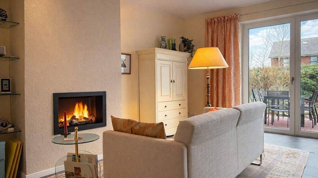 Der Gaskamin im Wohnbereich schafft ein besonderes Wohngefühl. Das Badezimmer im Obergeschoss ist stilvoll gestaltet und verfügt über eine großzügige, bodengleiche Dusche. Die individuell angefertigte Treppe stellt ein besonderes architektonisches Detail dar und verleiht dem Haus eine exklusive Note. Sehr schön sind auch die weißen Innentüren und die einheitlichen Bodenfliesen. Jeder Raum verfügt über eine individuell steuerbare Fußbodenheizung. Insgesamt bietet modernen Wohnkomfort in norddeutscher Bauqualität.