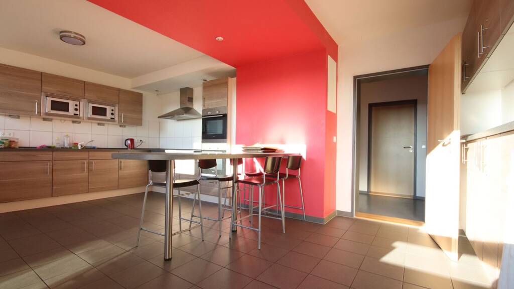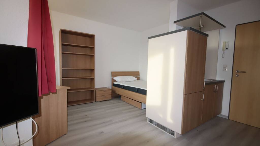 Die Zimmer sind mit diversen Gegenständen ausgestattet. Es steht Ihnen ein gemütliches Bett inkl. Matratze zur Verfügung. Des Weiteren befindet sich in dem Zimmer ein geräumiger Kleiderschrank. Ebenfalls können Sie an einem vorhandenen Schreibtisch für Ihre Ausbildung oder Ihr Studium lernen. Ein Flachbildfernseher sowie ein großzügiger Kühlschrank geben dem Zimmer den nötigen Komfort. Ein Waschbecken samt Unterschrank und Spiegel sind ebenfalls vorhanden. Auf den jeweiligen Fluren teilen Sie sich eine großzügige Küche sowie Toiletten bzw. Duschräume.