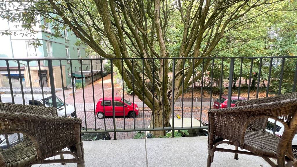 Vom Wohnzimmer aus gelangt man auf den Balkon, der einen schönen Blick eröffnet und zum Entspannen einlädt. Das Schlafzimmer überzeugt durch seine ruhige Lage und den angenehmen Ausblick in den grünen Hinterhof, der der gemeinschaftlichen Nutzung dient – ideal zum Abschalten und Wohlfühlen.