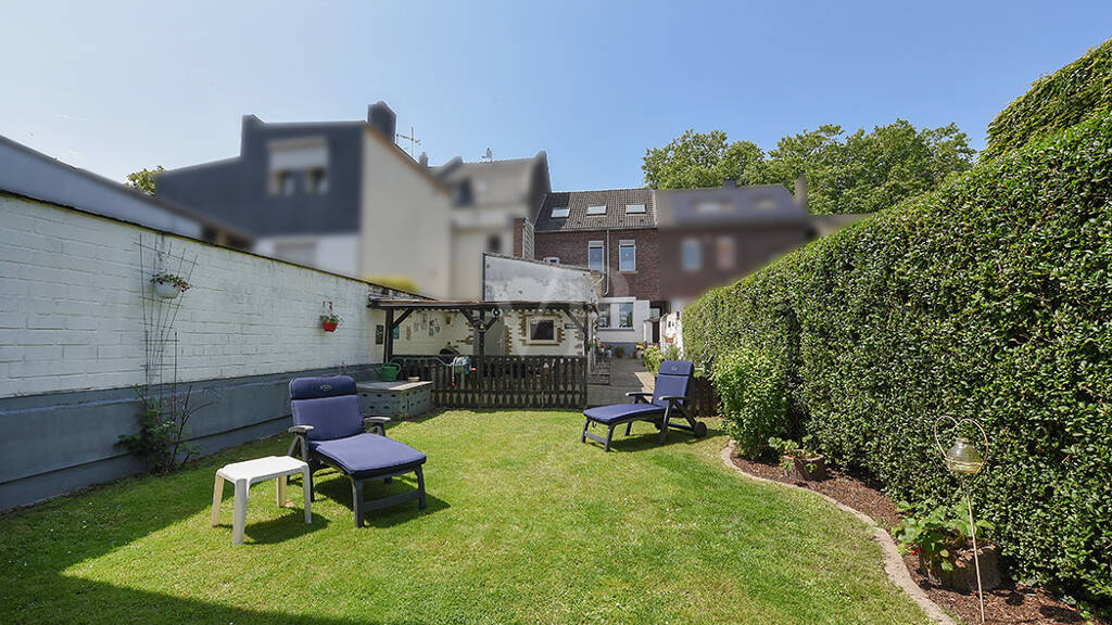 Der Gartenbereich hinter dem Haus schließt sich direkt an die Terrasse an und bietet ausreichend Platz für Freizeitaktivitäten, Blumenbeete oder eine kleine Sitzgruppe. Die Außenanlagen sind pflegeleicht angelegt und erleichtern die regelmäßige Instandhaltung. Aktuell gestaltet es sich als Ruhe-Oase und Spielparadies für Kinder.