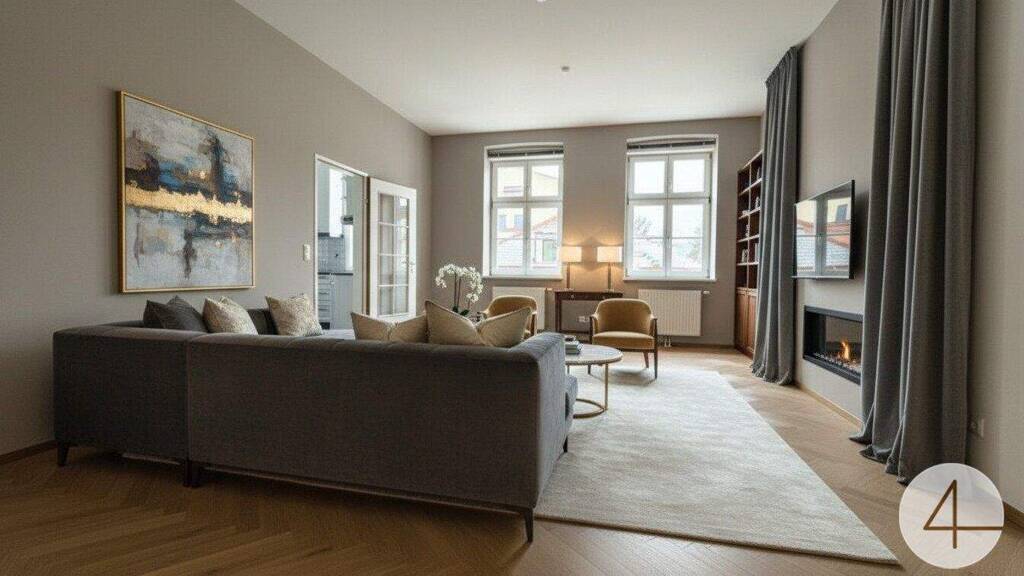 The great size results from combining two apartments, plus you have two entrances and could also separate the areas into living and sleeping areas (guest area and private area). The light-flooded rooms and the spacious layout make this apartment the ideal choice for a large family, students or as an apartment with a home office.