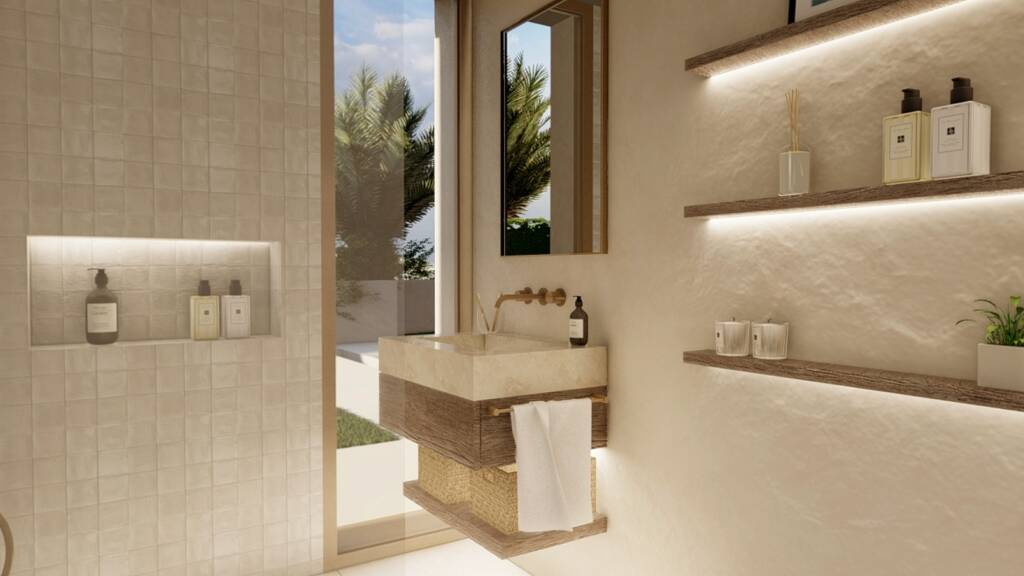 4 bedrooms, 4 bathrooms. 270m2 internal and 200m2 external. Built with unique materials and high spec finishes create inviting, liveable spaces and open plan living maximises the island's glorious natural light to invoke a feeling of space, calm and freedom. This design fuses the Mediterranean concept of slow living with cosmopolitan urban vibes.