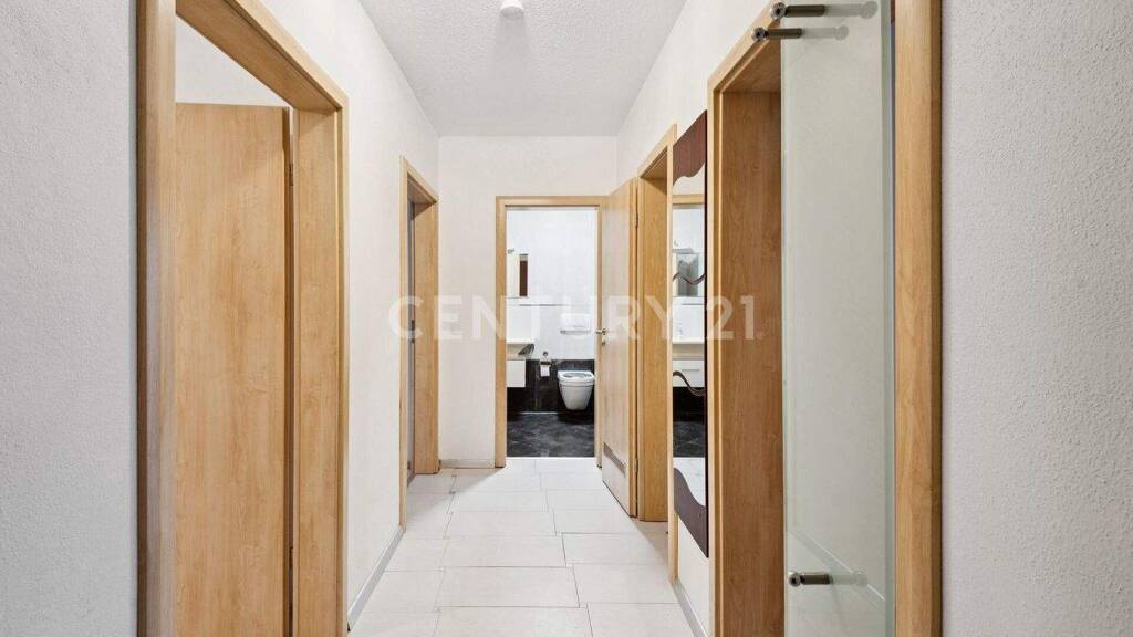 Diese helle 2-Zimmer-Wohnung mit einer Wohnfläche von ca. 66 m² überzeugt durch eine durchdachte Raumaufteilung, lichtdurchflutete Wohnräume und einem großzügigen, überdachten Balkon. Der Mittelpunkt der Wohnung ist das große Wohnzimmer, das dank einer breiten Fensterfront viel Tageslicht erhält und direkten Zugang zum Balkon bietet. Der hochwertige Furnierboden sorgt für eine warme und einladende Atmosphäre.