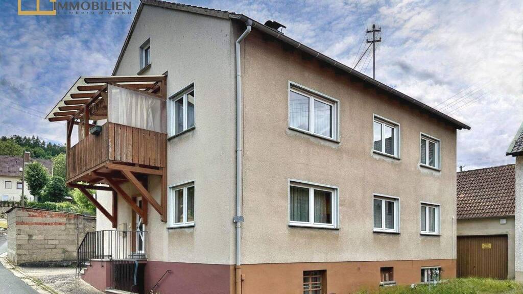 Das Zweifamilienhaus in Scheßlitz, Stadtteil Zeckendorf, wurde 1966 gebaut und bietet eine Wohnfläche von ca.168,0 m², aufgeteilt auf zwei separate 3-Zimmer Wohnungen mit jeweils ca. 84 m². Die Wohnungen sind baugleich. Vom Treppenhaus im Obergeschoss kommt man auf den Süd-Ost Balkon mit Blick ins Grüne. Das massiv gebaute Zweifamilienhaus ist voll unterkellert und verfügt über ein nicht ausgebautes Dachgeschoss. Das Objekt ist nicht vermietet und steht somit zur freien Verfügung. Eine kleine Gartenfläche ist auf der Westseite des Grundstücks vorhanden, auf der südlichen Grundstücksgrenze kommt man über den Hof zur Einzelgarage. Folgende Modernisierung wurden im Laufe der Jahre durchgeführt: - 2019 Bodenbeläge Obergeschoss - 2016 Gas-Zentralheizung inkl. Warmwasserspeicher Fa. elco | Klöckner - Flüssiggastank auf dem Grundstück - 2005 Badezimmer Obergeschoss - 2005 Bodenbeläge Erdgeschoss - 2000 Haustüre - 1998 Fenster und Heizkörper Erdgeschoss | Obergeschoss - 1998 Küche Obergeschoss - 1998 Balkonanbau