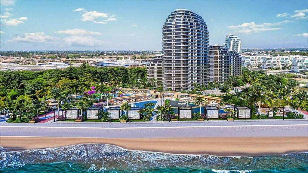 Strand-Eigentumswohnung mit Blick auf die Berge und Ausblick auf das Meer in Nordzypern-Gaziveren