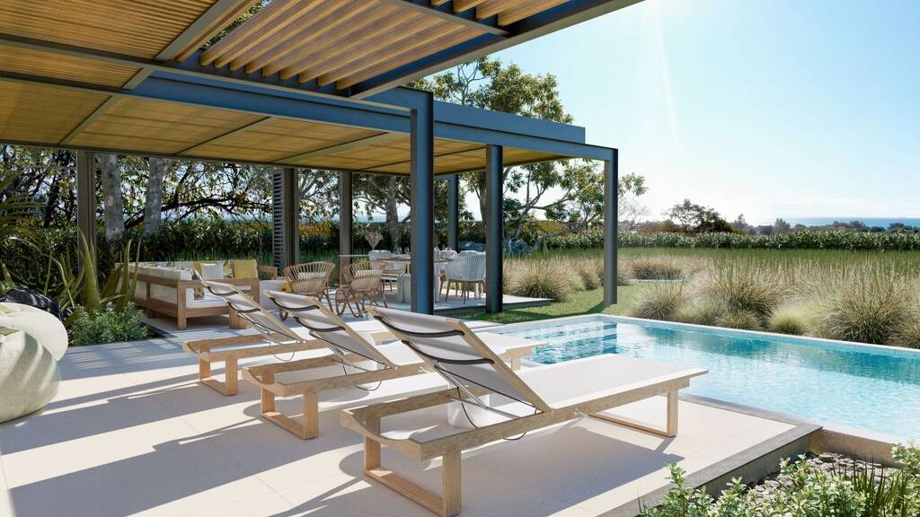 Im Herzen der Villa befindet sich ein architektonisch gestalteter Innenhof, der als grünes Zentrum dient und Licht, Luft sowie üppige Vegetation in die Wohnbereiche bringt. Dieses Element steigert nicht nur die Ästhetik, sondern fördert auch natürliche Belüftung und einen fließenden Übergang zwischen Innen- und Außenbereichen. Die optimale Ausrichtung und der Schutz vor vorherrschenden Winden sorgen ganzjährig für höchsten Wohnkomfort.