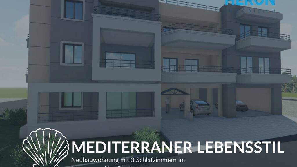 Stellen Sie sich vor: Sie öffnen am Morgen die Balkontür, lassen die warme Ägäisbrise herein und genießen Ihren ersten Kaffee mit Blick auf das strahlende Blau des Himmels. Diese Neubauwohnung im 1. Obergeschoss vereint modernes Wohnen, hochwertige Ausstattung und eine durchdachte Raumaufteilung mit dem einzigartigen Lebensgefühl Griechenlands.