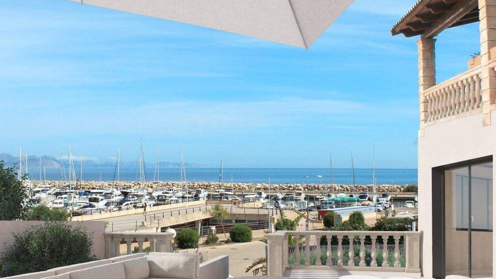 Hinter dem Haus verläuft ein Weg, neben dem Haus eine Grünzone der Gemeinde. Und von den Terrassenflächen aus sieht man über den Hafen, die Bucht von Alcùdia bis um dahinter liegenden Cap Formentor, welches an der Spitze der Küste noch hinter der Halbinsel La Victoria hervorragt.