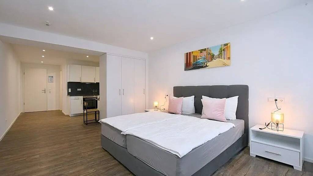 Modern möbliertes Apartment im Boardinghaus im Zentrum von Reutlingen. Mit TV, WLAN, Küchenzeile, Dusche/WC sowie Waschmaschine und Trockner im Haus. Ideal für Geschäftsreisende, Projektarbeiter oder Aufenthalt auf Zeit.