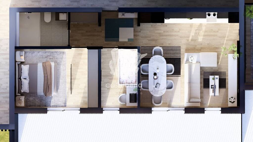 Die Wohnung bietet eine intelligente und harmonische Verteilung, bestehend aus einem eleganten Schlafzimmer, einem vielseitigen Büro, das sich ideal für Arbeit oder zusätzlichen Ruheraum eignet, einer modernen Toilette, einem privaten Balkon, der zu entspannenden Momenten einlädt, und einem reservierten Parkplatz, der Komfort und totale Bequemlichkeit gewährleistet.