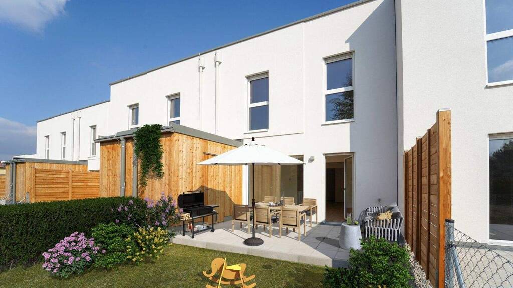 ERSTBEZUG! Neu fertiggestellte Reihenhäuser in moderner Holzbauweise, die nicht nur nachhaltig, sondern auch unglaublich wohnlich sind. Perfekt für alle, die von einem Zuhause mit klarem Konzept, viel Licht und einer grünen Umgebung träumen. Direkt beim Wiener Neustädter Kanal - liebevoll das "Canale Grande von Niederösterreich" genannt - wohnen Sie dort, wo andere spazieren gehen. Viel Natur, viel Ruhe und trotzdem top angebunden: Der Bahnhof Civitas Nova liegt gleich ums Eck.