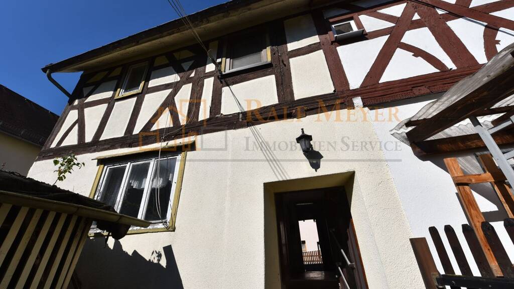 Das kompakte Fachwerkhaus wartet auf eine liebevolle Sanierung und bietet viel Potenzial zur individuellen Gestaltung.