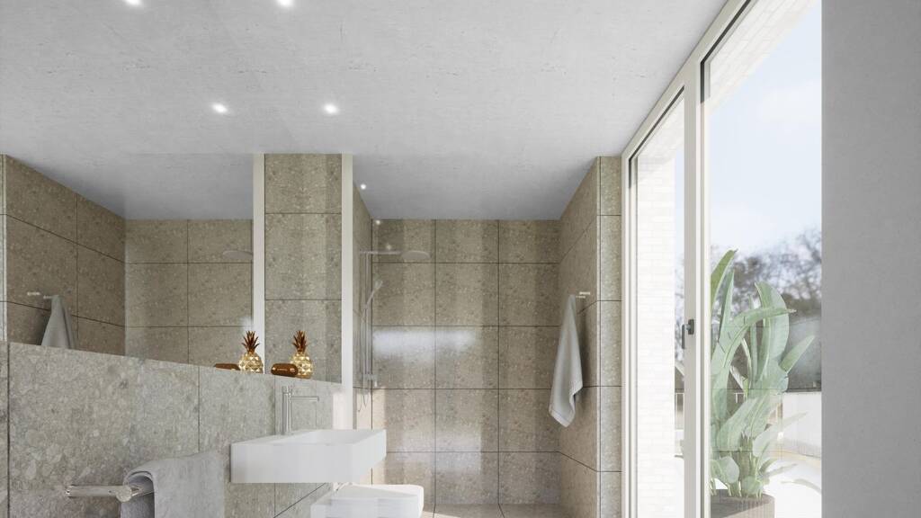 - Echtholzparkett in den Wohnräumen - Große Fliesen in den Bädern - Überwiegend bodentiefe Fenster - Screens vor den Fenstern - Große Terrassen in den Penthäusern - Loggien in den Etagenwohnungen - Energieeffizienter Neubau KfW 55 Standard - Fernwärme - Tiefgarage und Kellerraum - Aufzüge