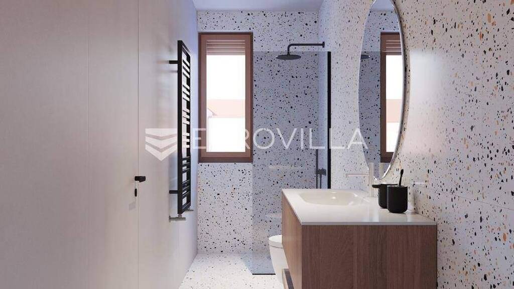 Slobostina, Otok,Green Island Residence, moderno i ekskluzivno stambeno naselje, novogradnja visokog standarda, koja spaja suvremeni dizajn i visoku energetsku ucinkovitost.Stan A112- dvosoban na 1. katu, zatvorene povrsine 49.10 m2 s loggiom 3,25 m2 (2,43 m2) i natkrivenim balkonom 4,20 m2 (2,10 m2), ukupno NKP 53,63 m2.Stanu pripada garazno parking mjestoGPM 24 povrsine 13,87 m2 (6,93 m2) te spremisteSP 24 u podrumu povrsine 4,76 m2 (2,38 m2) te postoji mogucnost kupnje dodatnog parkirnog mjesta i spremista.Ukupno obracunskiNKP 62,94 m2.Sastoji se od ulaznog hodnika, otvorenog dnevnog boravka s kuhinjom i blagovaonicom, spavace sobe, kupaonice, loggie i natkrivenog balkona.Oprema: