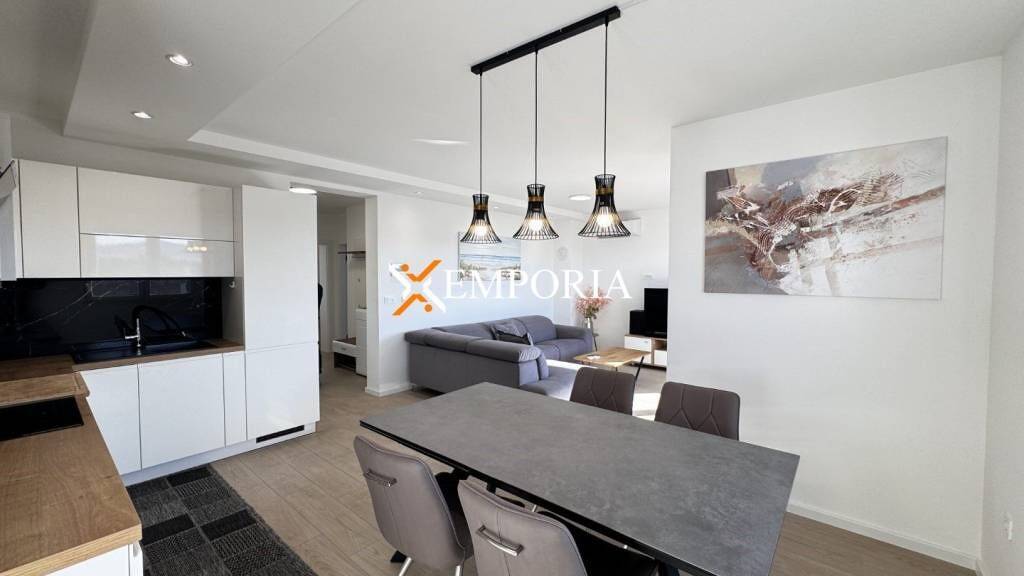 Zum Verkauf steht ein luxuriöser, vollständig möblierter Penthouse in einem Neubau im beliebten Stadtteil Borik in Zadar. Die Wohnung liegt nur 490 m vom Meer und 2,7 km vom Stadtzentrum entfernt. Die gesamte Nettofläche inklusive Nebenflächen beträgt 100,63 m². Besonders hervorzuheben ist die großzügige Dachterrasse mit 78,80 m², die einen hervorragenden Meerblick sowie einen vorbereiteten Anschluss für einen Whirlpool bietet – ideal zum Entspannen und Genießen des mediterranen Lebensstils.