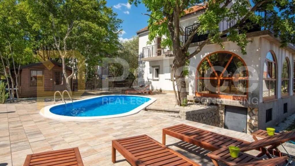 Traumhaus auf Krk: Pool, Privatsphäre und das Meer zum Greifen nah, Kornic, 250m2Dieses wunderschöne Haus befindet sich an einem attraktiven Ort auf der Insel Krk, im ruhigen Teil von Kornic, und eignet sich ideal für das tägliche Familienleben oder als Luxusimmobilie zur Miete.