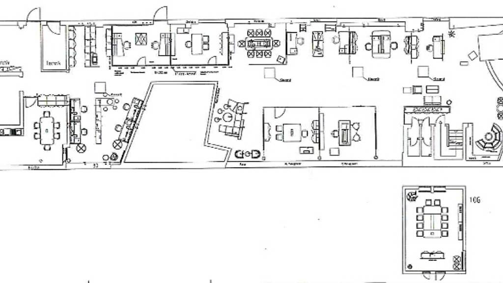 Das Lokal ist sehr hochwertig ausgestattet mit Glas-Trennwänden, abgehängte Decke mit Einbauleuchten und Klimaanlage, Teppich- und strapazfähige Gummibeläge.