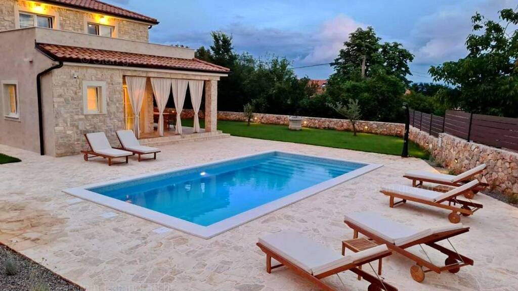 Insel Krk, Gebiet Dobrinj, Steinvilla mit Swimmingpool und großem Garten!