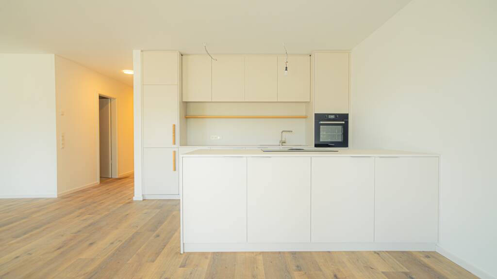 Hier verschmelzen Gemütlichkeit und Eleganz zu einer Einheit. Die moderne Küche ist nahtlos in den Wohnbereich integriert und ist mit einer hochwertigen Küchenzeile mit Hochschränken und mit einem Küchenarbeitsblock ausgestattet. Von diesem Bereich aus gelangen Sie auf den großzügigen Balkon, die Ihnen eine private Outdoor-Oase bietet.